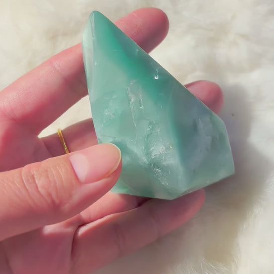 Each tower is completely unique — shaped by nature, hand-polished with intention. This one-of-a-kind piece carries an oceanic glow that calms your energy field and reconnects you with your authentic rhythm.